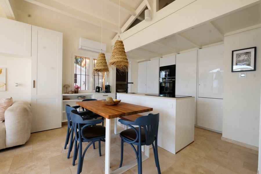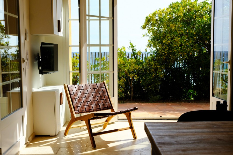 Die Villa liegt verborgen unter hohen Schirmkiefern (Pins Parasol) und bietet einen privaten Zugang zum Strand. Die Ausrichtung ist nach Süden, sodass Sie morgens die Sonne über dem Wasser aufgehen sehen. Im Inneren strahlt das Haus Charme und Komfort aus, mit einer stilvollen Einrichtung, die perfekt zu diesem besonderen Ort passt.