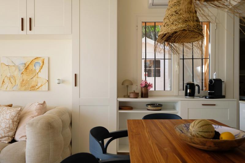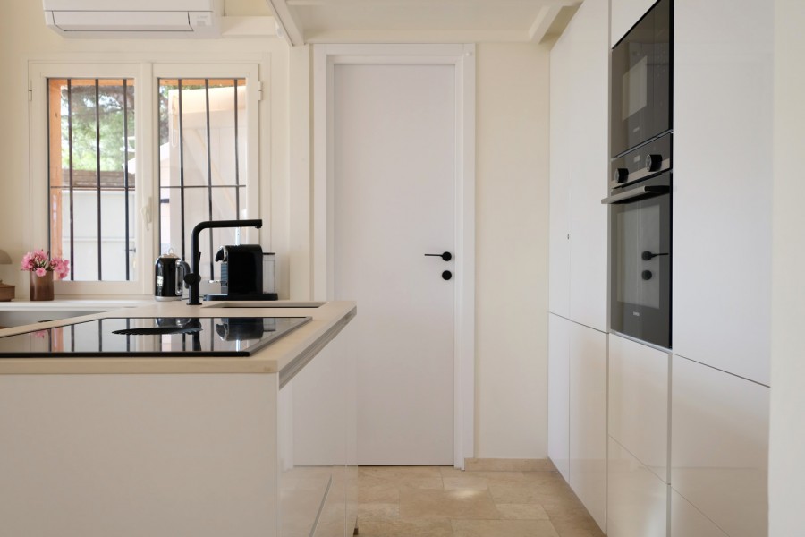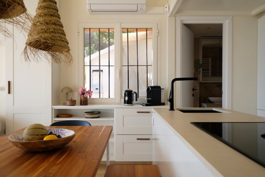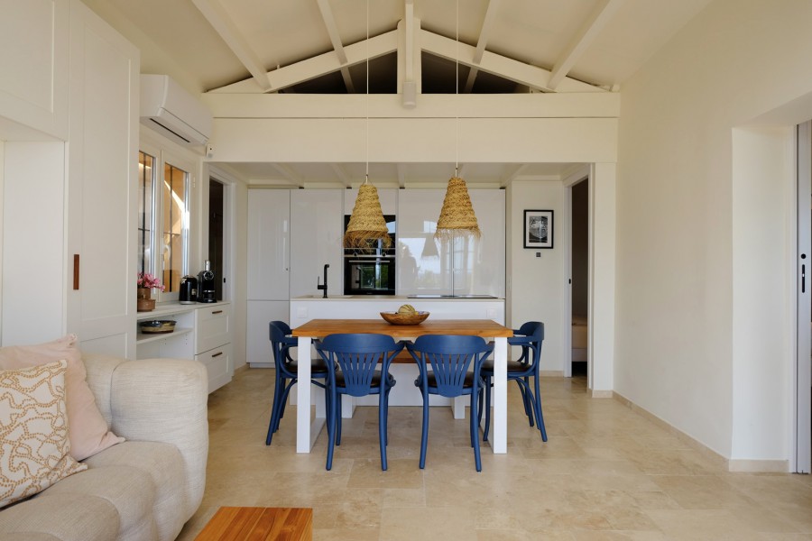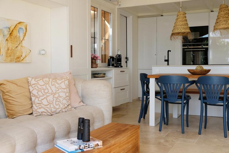 Dieses Ferienhaus ist klein, aber sehr fein. Sie genießen 45 m² Wohnfläche, alles ebenerdig. Das gemütliche Wohnzimmer hat Flügeltüren zur Terrasse und bietet einen schönen Meerblick. Die offene Küche ist modern und gut ausgestattet. Das Haus ist mit einer Klimaanlage ausgestattet; das Gerät befindet sich im Wohnzimmer und kühlt dank der kompakten Größe des Hauses auch die beiden Schlafzimmer effektiv.