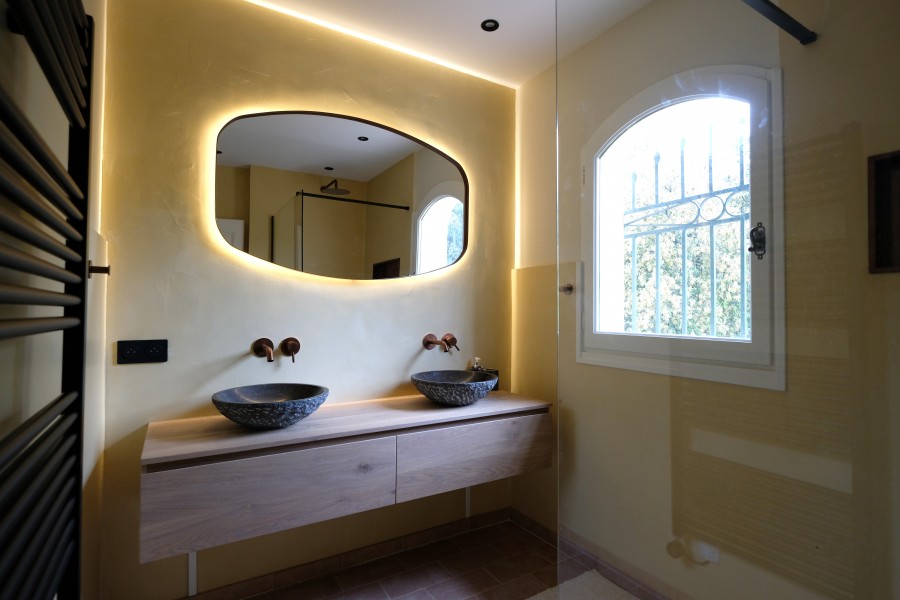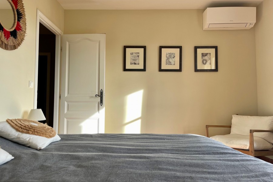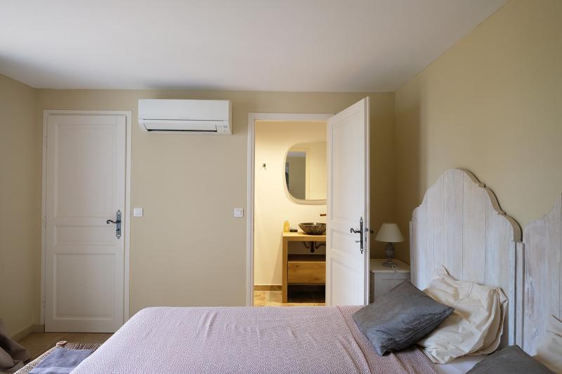 Die Villa verfügt über 5 Schlafzimmer und 4 Badezimmer. Es gibt 2 Schlafzimmer im Erdgeschoss und 3 im 1. Stock. Im Erdgeschoss (im Wohnbereich) bietet Schlafzimmer 1 ein Doppelbett (160x200) mit eigenem Badezimmer (Waschbecken, Dusche und separates WC). Schlafzimmer 2 verfügt über ein Doppelbett (180x200) und ein eigenes Badezimmer (Waschbecken und Dusche). Diese Schlafzimmer sind beide mit Klimaanlage ausgestattet.