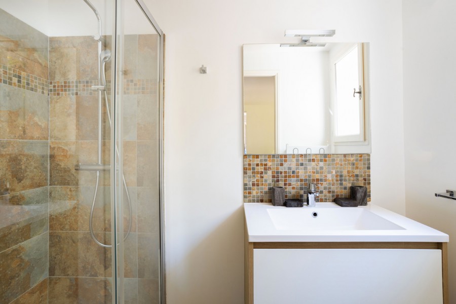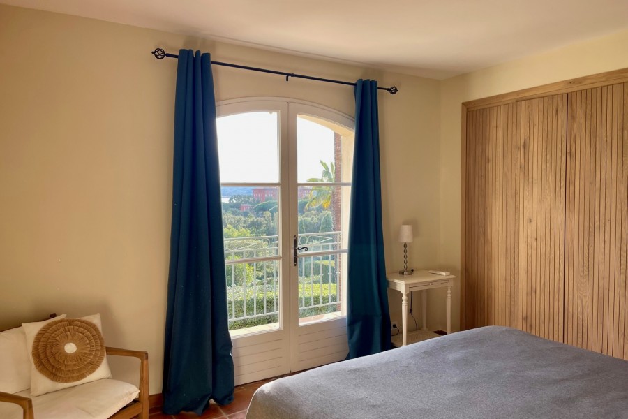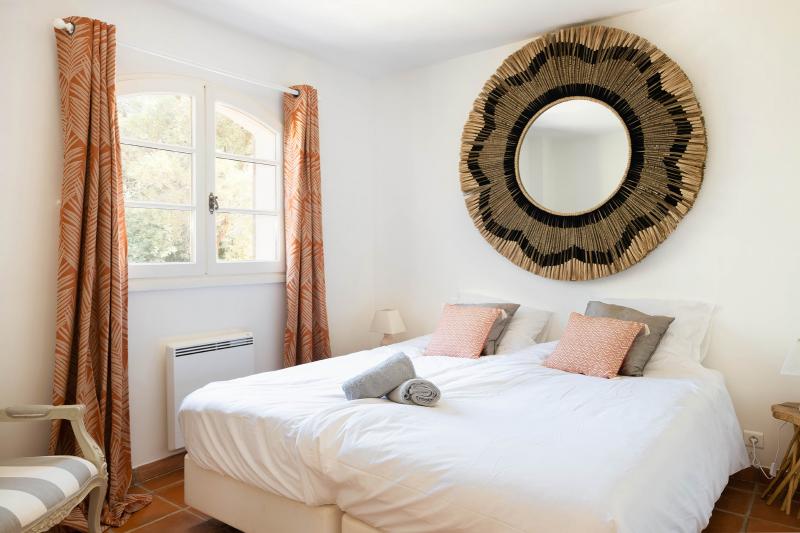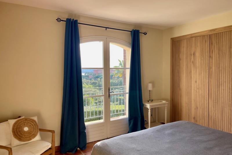 Im 1. Stock: Schlafzimmer 3 bietet ein Doppelbett (180x200) und ein eigenes Badezimmer (Waschbecken und Dusche). Aufgrund des schönen Balkons und der tollen Aussicht auf Saint Tropez nennen wir dies gerne das Elternschlafzimmer. In den Schlafzimmern 4 und 5 stehen zwei Einzelbetten (2x90x200). Beide teilen sich das 4. Badezimmer (Waschbecken, Dusche, Badewanne und separates WC). Schlafzimmer 3 und 4 sind mit Klimaanlage ausgestattet.