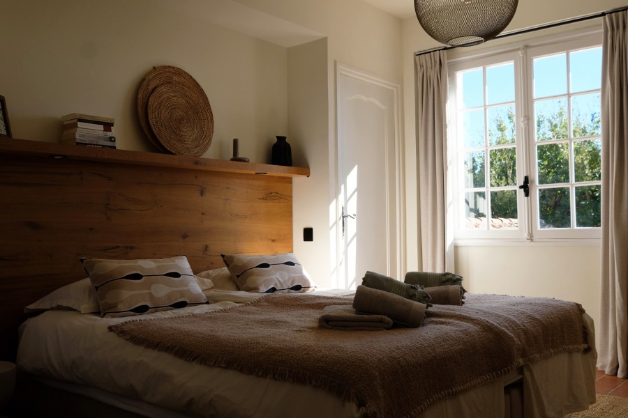 Schlafzimmer 2, 3 und 4 bieten vergleichbaren Komfort mit einem luxuriösen Doppelbett (160x200) und einem modernen en-suite Badezimmer mit begehbarer Dusche und Waschtisch. Schlafzimmer 2 hat als besonderes Extra direkten Zugang zum Garten und Pool sowie Blick ins Grüne.