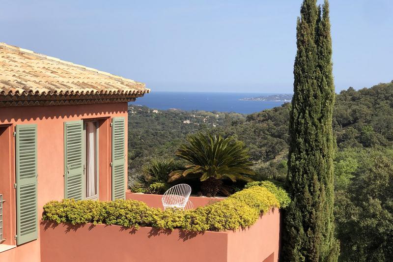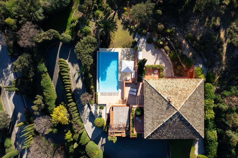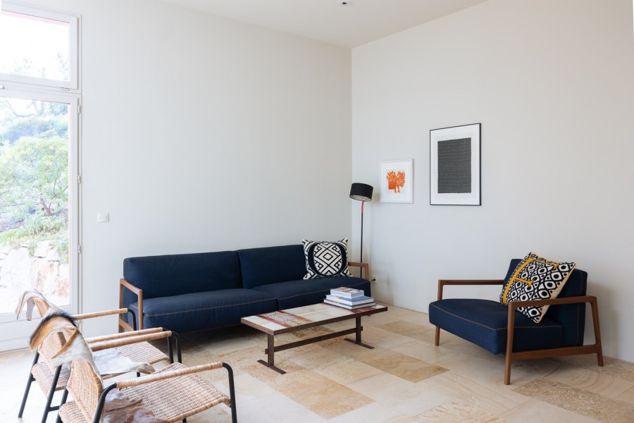 Das Wohnzimmer ist komfortabel eingerichtet mit verschiedenen Sofas und Stühlen am Kamin. Zusätzlich gibt es eine separate Sitzecke im Bereich des Smart TV (keine NL- oder BE-Kanäle, aber mit Netflix-Vorbereitung). Vom Wohnzimmer aus haben Sie einen schönen Blick auf den Garten, den Pool und die umliegenden Hügel.