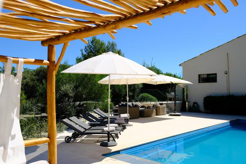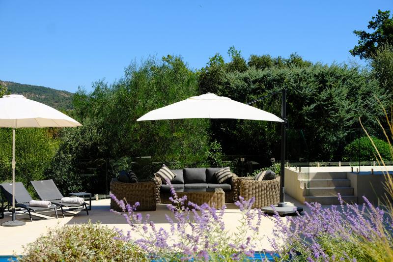 Diese moderne Villa ist vollständig mit Klimaanlage ausgestattet und bietet eine Wohnfläche von 200 m². Das Wohnzimmer verfügt über eine XL-Komfort-Sitzecke. Direkt angrenzend an das Wohnzimmer befindet sich der Essbereich. Große Glasschiebetüren bieten Zugang zur Terrasse, die wiederum Zugang zu dem beeindruckenden Poolbereich bietet.