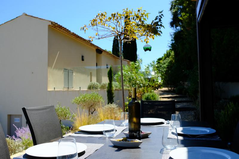 Die moderne offene Küche ist gut ausgestattet, unter anderem mit einem Kühlschrank, Geschirrspüler, Nespresso-Maschine, Mikrowelle und einem Ofen, um morgens köstliche frische Croissants zuzubereiten.