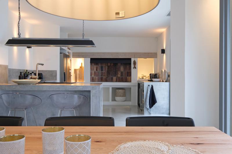Das Interieur ist modern und geschmackvoll eingerichtet. Alles ist neu! (2019). Bequeme Möbel auf einem glatten Gussboden in Betonoptik, kurz gesagt, eine sehr modern eingerichtete Villa.