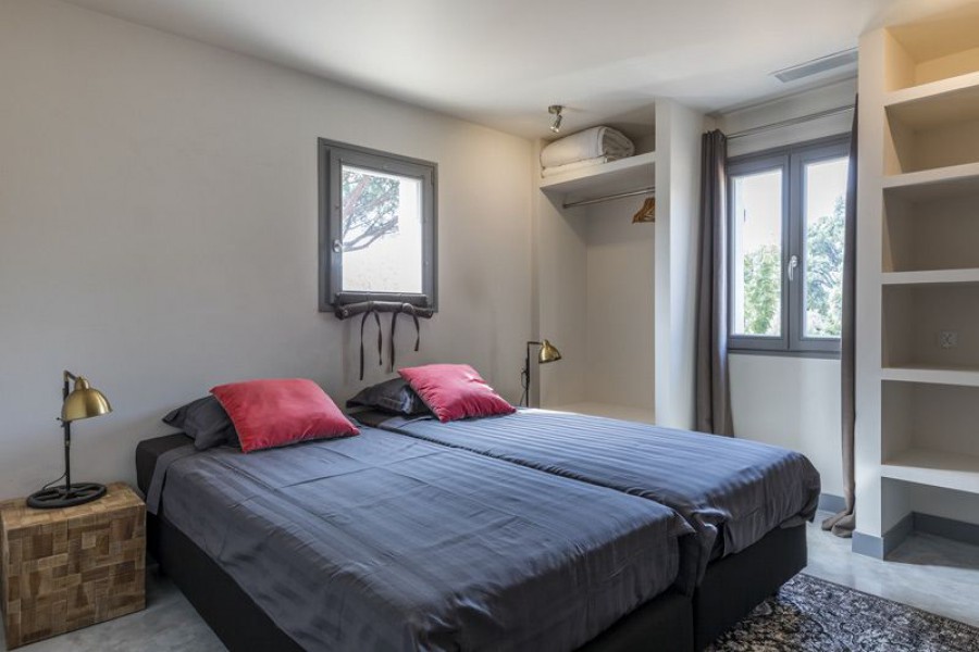 Schlafzimmer 3 bietet vergleichbaren Luxus und Komfort. Bei dem Bett handelt es sich um ein Boxspring Doppelbett (2x90x210) und das Badezimmer ist en-suite (doppelte Dusche und doppelte Waschbecken). Schlafzimmer 4 befindet sich, wie zuvor erwähnt, in dem Gäste-Appartement auf der 1. Etage. Hier steht ein Doppelbett (2x90x210) und das Badezimmer ist en-suite (Dusche, doppelte Waschbecken und WC). Das Appartement ist ideal für Großeltern oder Freunde, die zu Besuch kommen.