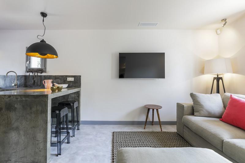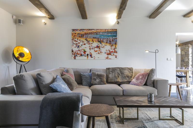 Die Villa verfügt über ein schönes Wohnzimmer, welches besonders stilvoll eingerichtet ist. Die große komfortable Sitzecke ist so aufgestellt, dass Sie den Fernseher, das Soundsystem und im Frühling und im Winter den Kamin genießen können. Die Einrichtung zeichnet sich durch den Gebrauch luxuriöser Materialien und Stoffen aus. Wir lieben die eleganten dunklen Farbenkombinationen der Einrichtung.