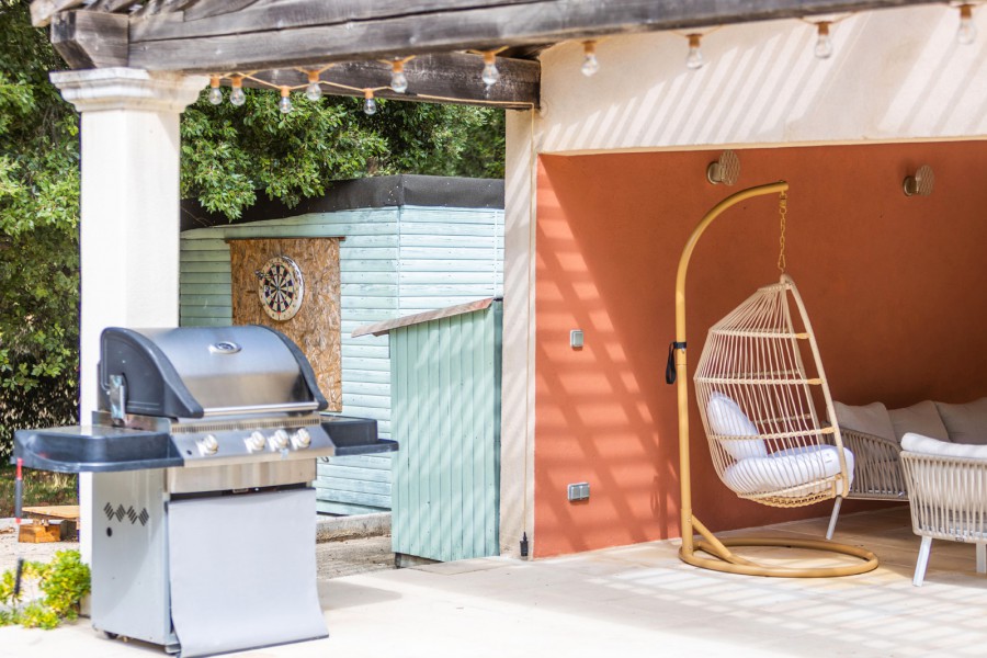 Die Küche ist geräumig und luxuriös. Modern ausgestattet mit amerikanischem Kühl-/Gefrierschrank, Geschirrspüler, 4-Flammen-Elektrokochfeld, Mikrowelle, Backofen und Filterkaffeemaschine. Auch von der Küche aus haben Sie direkten Zugang zur überdachten Terrasse. Ideal für das morgendliche Frühstück im Freien!