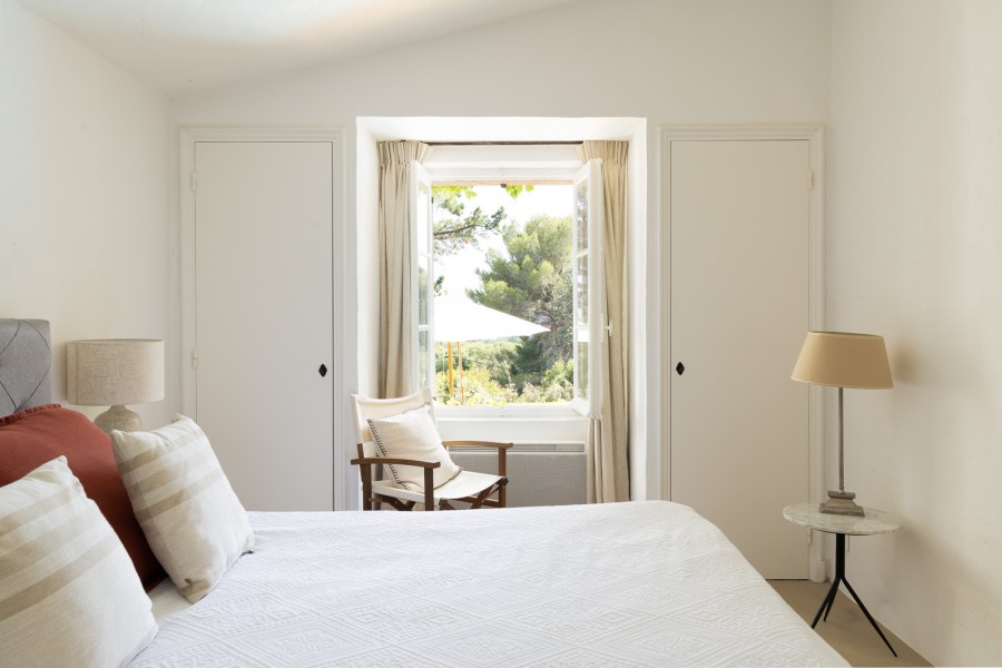 Die Villa verfügt über fünf Schlafzimmer und fünf moderne Badezimmer. Alle Betten wurden 2024 neu angeschafft und sind mit luxuriöser Bettwäsche ausgestattet. Alle Schlafzimmer sind klimatisiert. XXXDrei Schlafzimmer befinden sich auf der Wohnebene, eines im ersten Stock und eines im Gästehaus, das nur über einen separaten Außeneingang zugänglich ist.