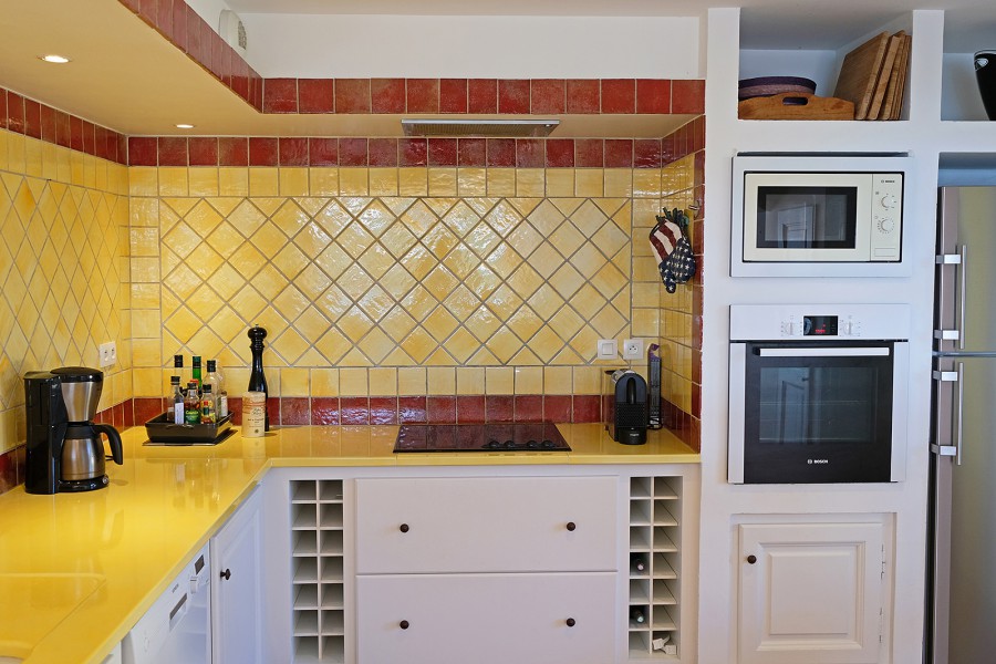Die offene Küche ist komplett ausgestattet und verfügt über einen Kühlschrank, 4 Kochplatten, Mikrowelle, Backofen, Geschirrspüler, Wasserkocher und Nespresso-Kaffeemaschine. In der Küche befindet sich ein geräumiger Esstisch für 10 Personen, von dem aus Sie eine schöne Aussicht haben.