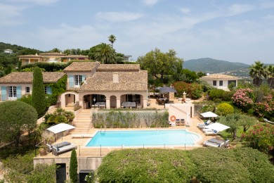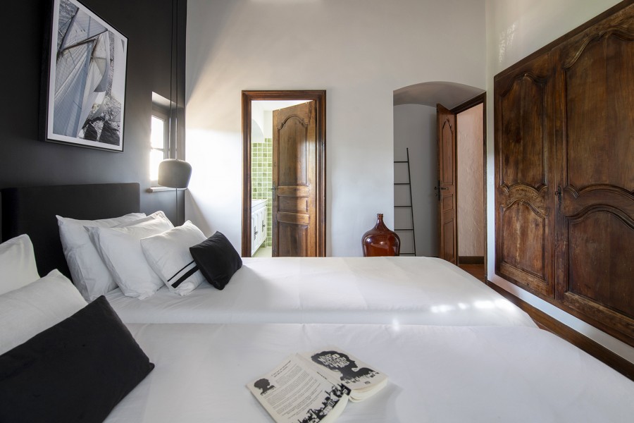 Dies ist eine sehr charmante Villa. Wir sind besonders begeistert von dem Kontrast zwischen der klassischen provenzalischen Bauweise (dicke Holzbalken, Stuckwände und Terrazzo-Böden) und der Einrichtung, die aus luxuriösen, komfortablen Designer-Möbeln und Accessoires besteht.