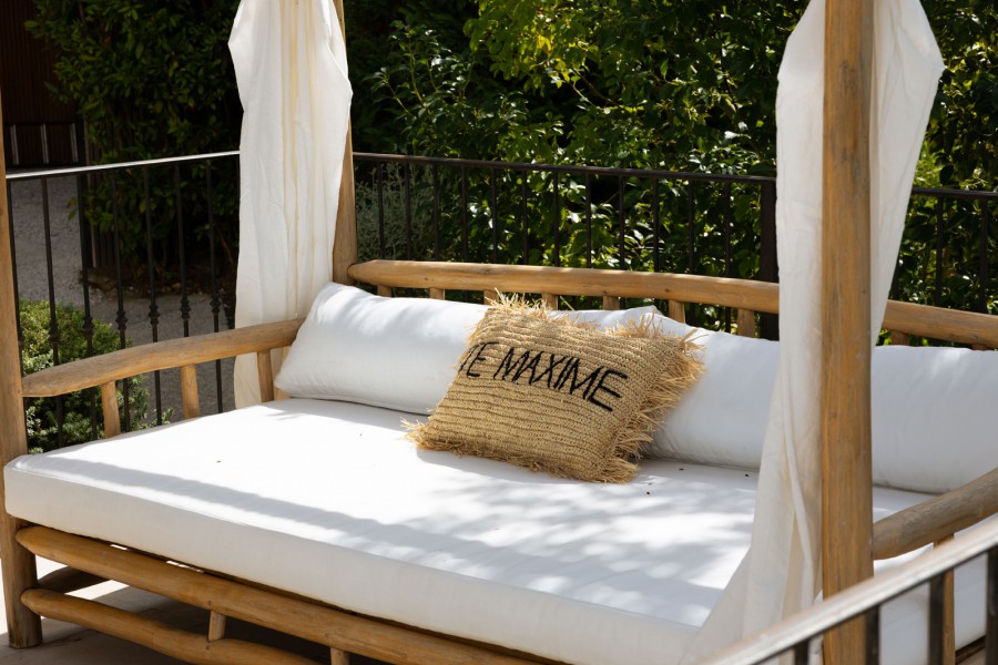 Schlafzimmer 5 befindet sich im Erdgeschoss, auf der Ebene des Pools. Hier steht ein Doppelbett (2x80x200). Das Badezimmer ist en-suite (Dusche, Waschbecken und WC). Falls gewünscht, kann man direkt nach dem Aufwachen in den Pool springen.