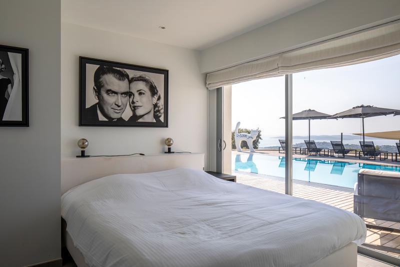 Unter dem großen Sonnentuch auf der Seeseite des Pools befindet sich eine Außenbar mit Kühlschränken und Eismaschine. Ein wunderschönes Lounge-Set ergänzt das luxuriöse Südfrankreich-Feeling.