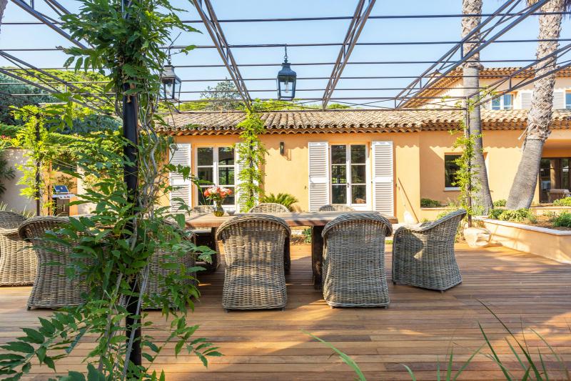 Außerdem gibt es einen Fernsehraum mit einem Sofa und einem großen Fernseher. Der angrenzende Speisesaal bietet Platz für 12 Personen mit einem fast 3 m langen Tisch und einer 3,6 x 1,6 m großen Eckbank. Der Speisesaal und die offene Küche, die vom berühmten L'Atelier de St. Paul entworfen wurde, sind mit allen modernen Küchengeräten ausgestattet, wie z. B. einem Weinkühlschrank mit zwei Temperaturzonen, einer Luxus-Kaffeemaschine und einem in der Küche vorhandenen Kombi-Ofen.