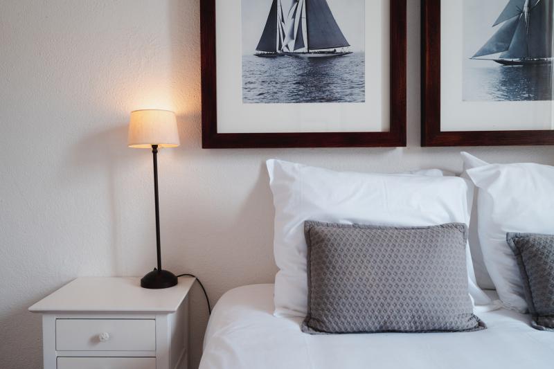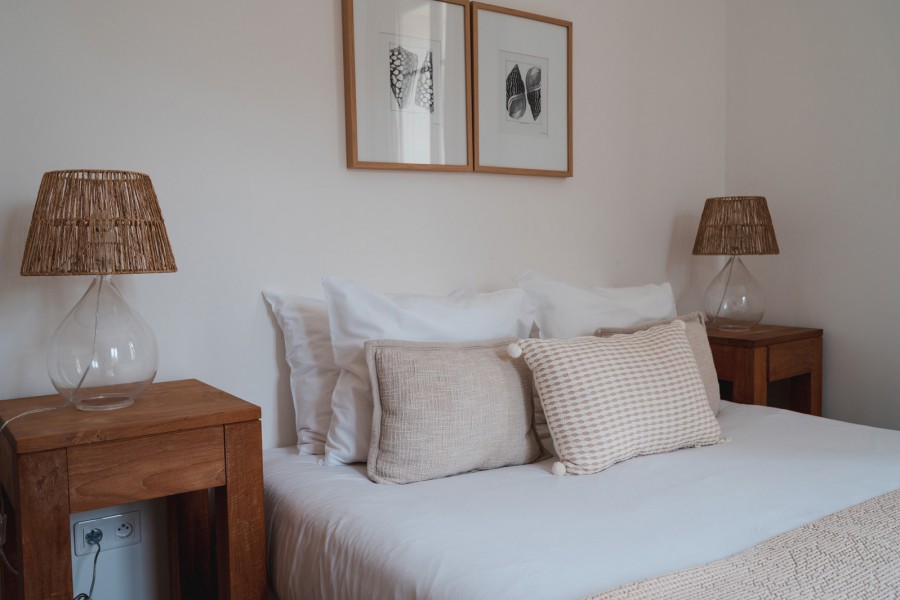 Schlafzimmer Nr. 6 befindet sich in einem separaten unabhängigen Studio in einem Haus im Garten. Das Studio besteht aus einem Schlafzimmer mit Doppelbett, einem Badezimmer mit Dusche, einem separaten WC, einer kleinen Sitzecke und einer private Terrasse. Das Wohnzimmer, das Studio und alle Schlafzimmer sind klimatisiert.