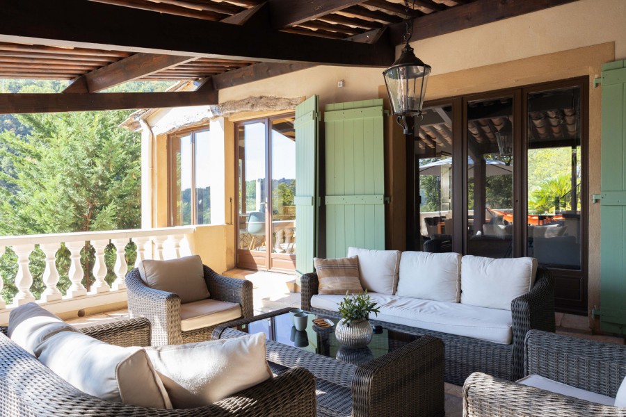 Beim Betreten fällt sofort die hohe Decke ins Auge, was ein Gefühl von Raum (250 m² Wohnfläche) und Luxus vermittelt. Im Zentrum des Wohnzimmers steht die komfortable Sitzecke. Die Terrassentüren, die zu der teilweise überdachten Terrasse führen, runden das Urlaubsgefühl ab. Selbstverständlich fehlen ein Fernseher (Playstation) und WLAN (Glasfaser) nicht.