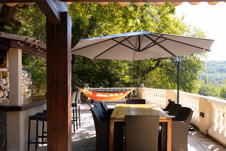 Im Anschluss an den Wohnbereich befindet sich die offene Küche. Modern und vollständig ausgestattet, mit u.a. Induktionsherd, zwei kompletten Backöfen, amerikanischem Kühlschrank mit Kaltwasser- und Eiswürfelspender, vollautomatischer Bohnen-Kaffeemaschine und Geschirrspüler. Von der Wohnküche mit Designer-Esstisch gelangt man ebenfalls auf die großzügige Terrasse. Sowohl der Wohnbereich als auch die Wohnküche sind klimatisiert. XXXDie Villa verfügt über ein echtes TV-Zimmer mit Playstation und einer XL-Sitzecke. Der Fernseher hat eine Diagonale von 65 Zoll, was für reichlich Filmspaß sorgt. Außerdem gibt es eine Bibliothek mit einer umfangreichen Buchsammlung in Niederländisch, Englisch und Deutsch sowie diversen Spielen.