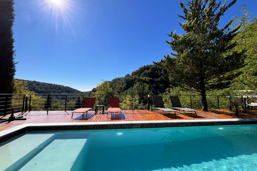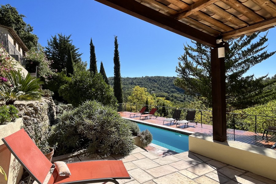 Im Obergeschoss: Schlafzimmer 1 verfügt über ein Doppelbett (180x200) und ein elegantes Jack & Jill-Badezimmer (Dusche und WC), das auch für das zweite Schlafzimmer zugänglich ist. Vom Schlafzimmer aus können Sie auf eine Terrasse treten, auf der Sie morgens den wunderbaren Ausblick und eine Tasse Kaffee genießen können.