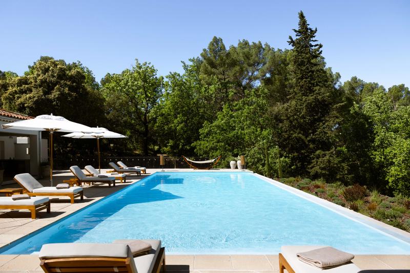 Natürlich kommen Sie, um die französische Sonne zu genießen, am Pool zu liegen oder im Freien zu essen. Jetzt hat die Villa La Donine einen sehr attraktiven Außenbereich. Schöne Sonnenliegen am Pool, ein großes überdachtes Poolhaus mit einer schönen Sommerküche (Plancha, großer Kühlschrank, Dienstleistungen Gläser, die Werke).