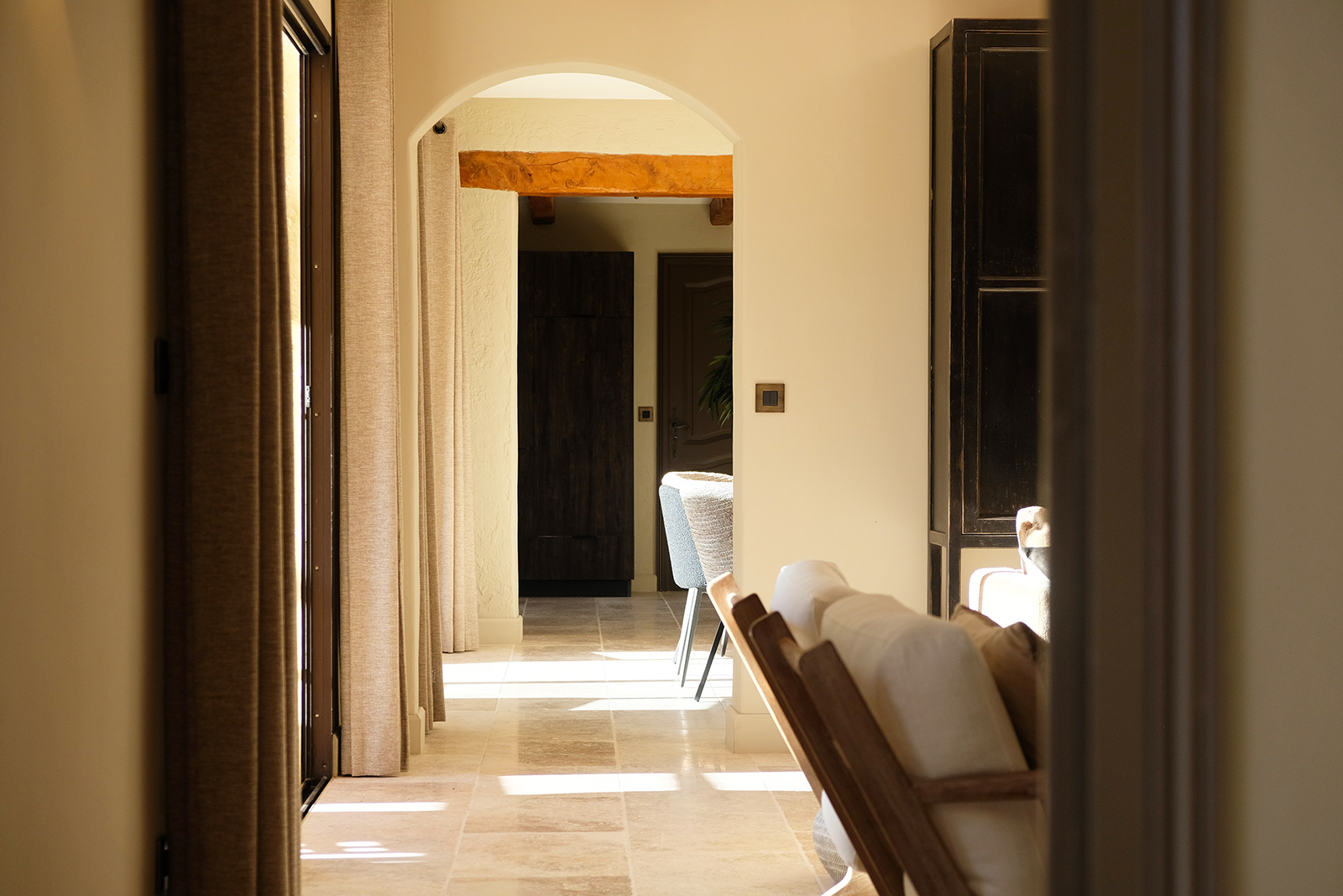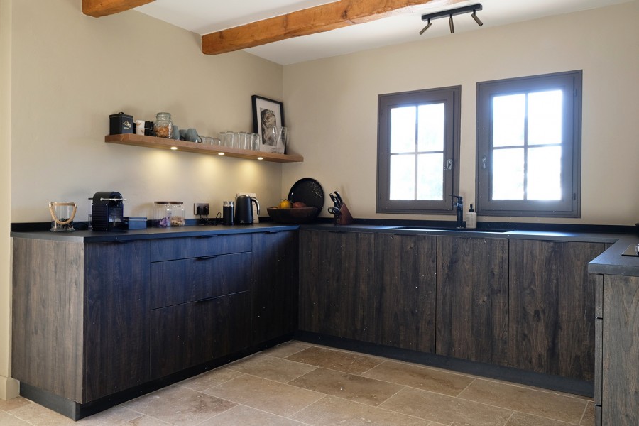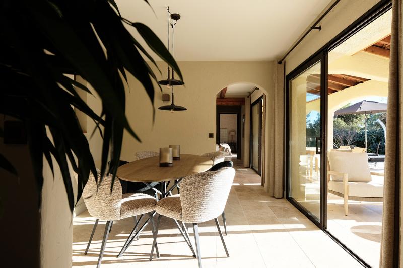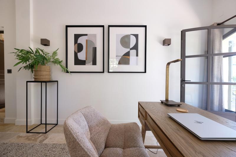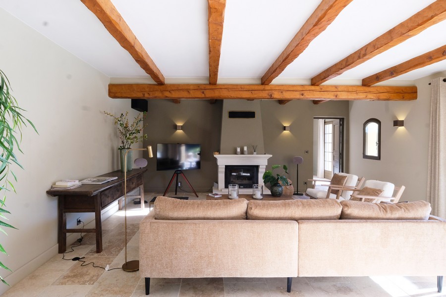 Provenzalische Villa mit einer Wohnfläche von 185 m² auf einem großzügigen privaten Grundstück von 4.000 m². Das gesamte Haus ist mit Klimaanlage ausgestattet. Im Erdgeschoss befinden sich das stilvolle Wohnzimmer, die moderne Küche, das Esszimmer, das moderne Arbeitszimmer und das luxuriöse Schlafzimmer der Eltern mit en-suite Badezimmer. Das Wohnzimmer ist sehr schön und stilvoll eingerichtet mit luxuriösen Sitzmöbeln. Es gibt einen direkten Zugang zur Terrasse und zum Pool. Die helle und moderne Einrichtung verleiht dem Raum eine zeitgemäße Ausstrahlung. Internet/Wi-Fi ist schnell und stabil über Starlink. Der Fernseher ist groß und bietet Netflix und NLziet. Für die Audioausstattung sind Sonos Lautsprecher vorhanden. Was das Wohnzimmer besonders macht, ist die schöne, zeitgenössische Farbgestaltung.