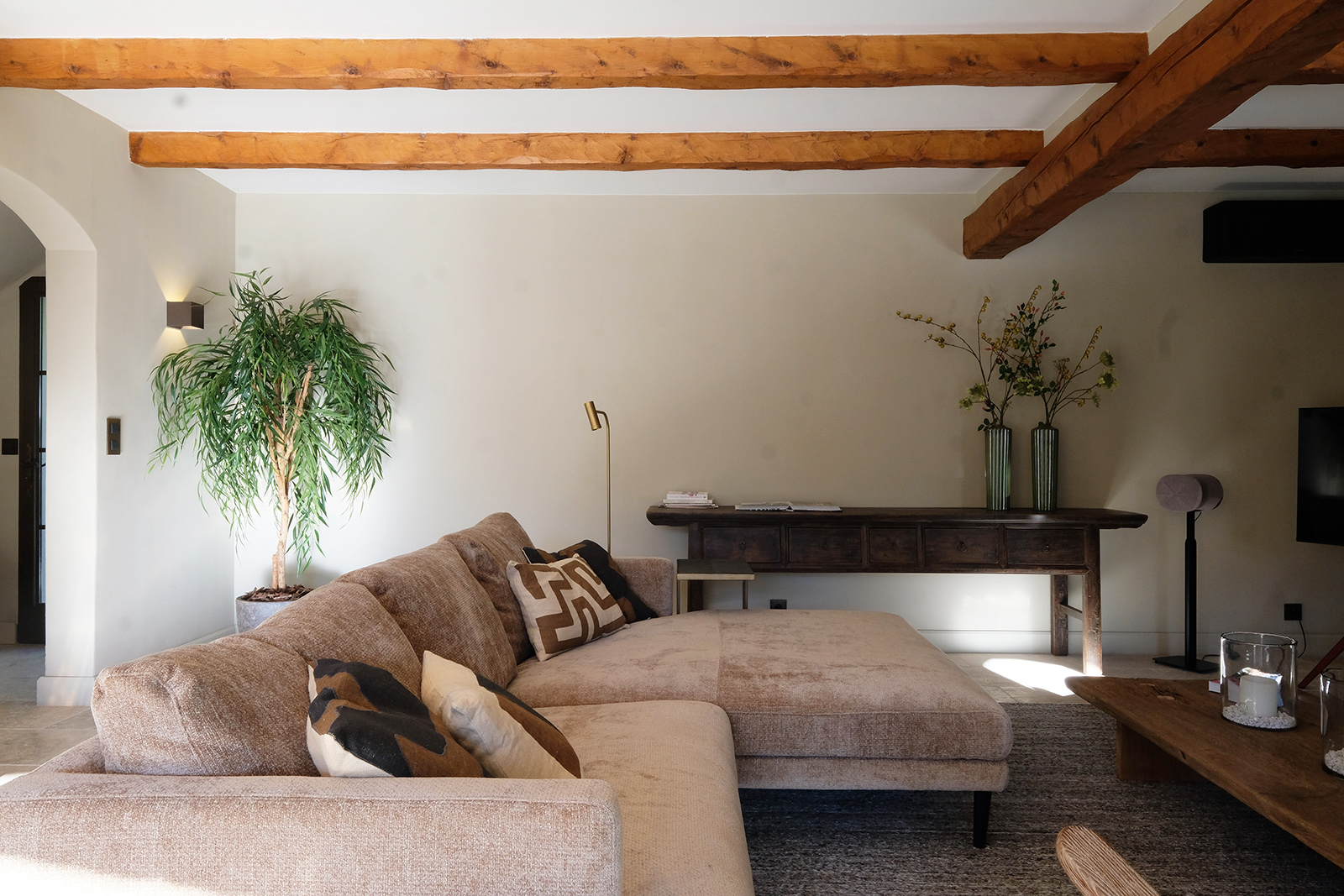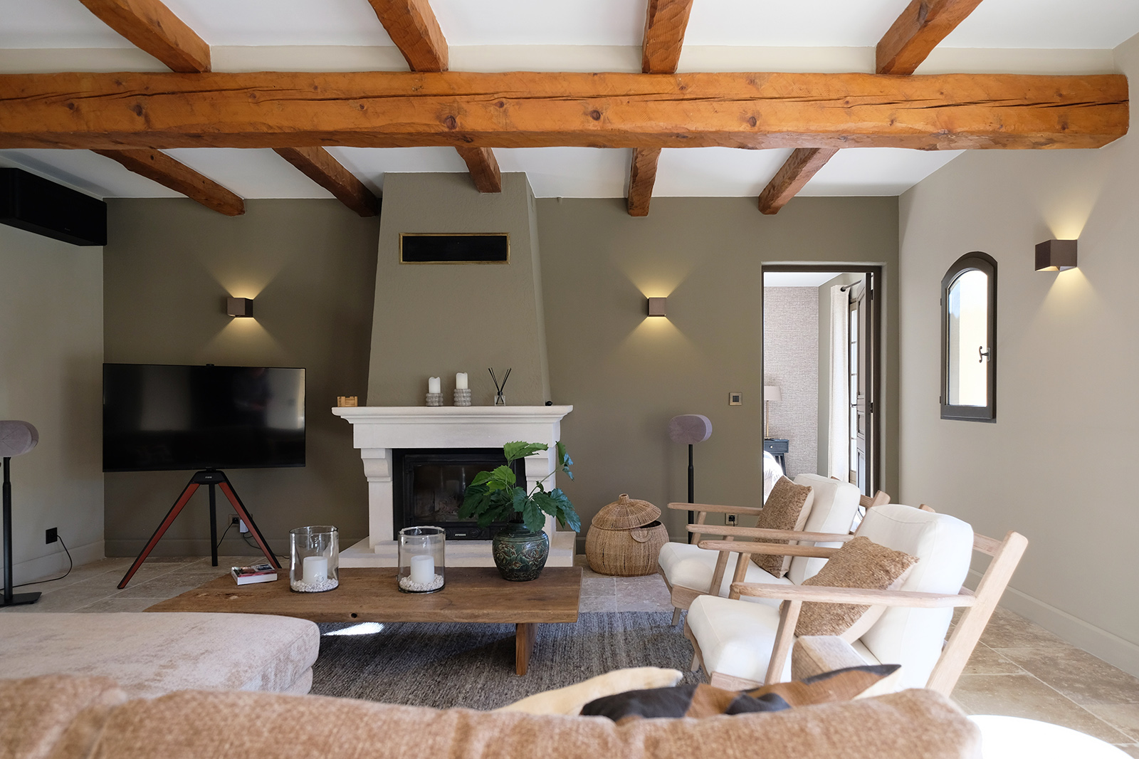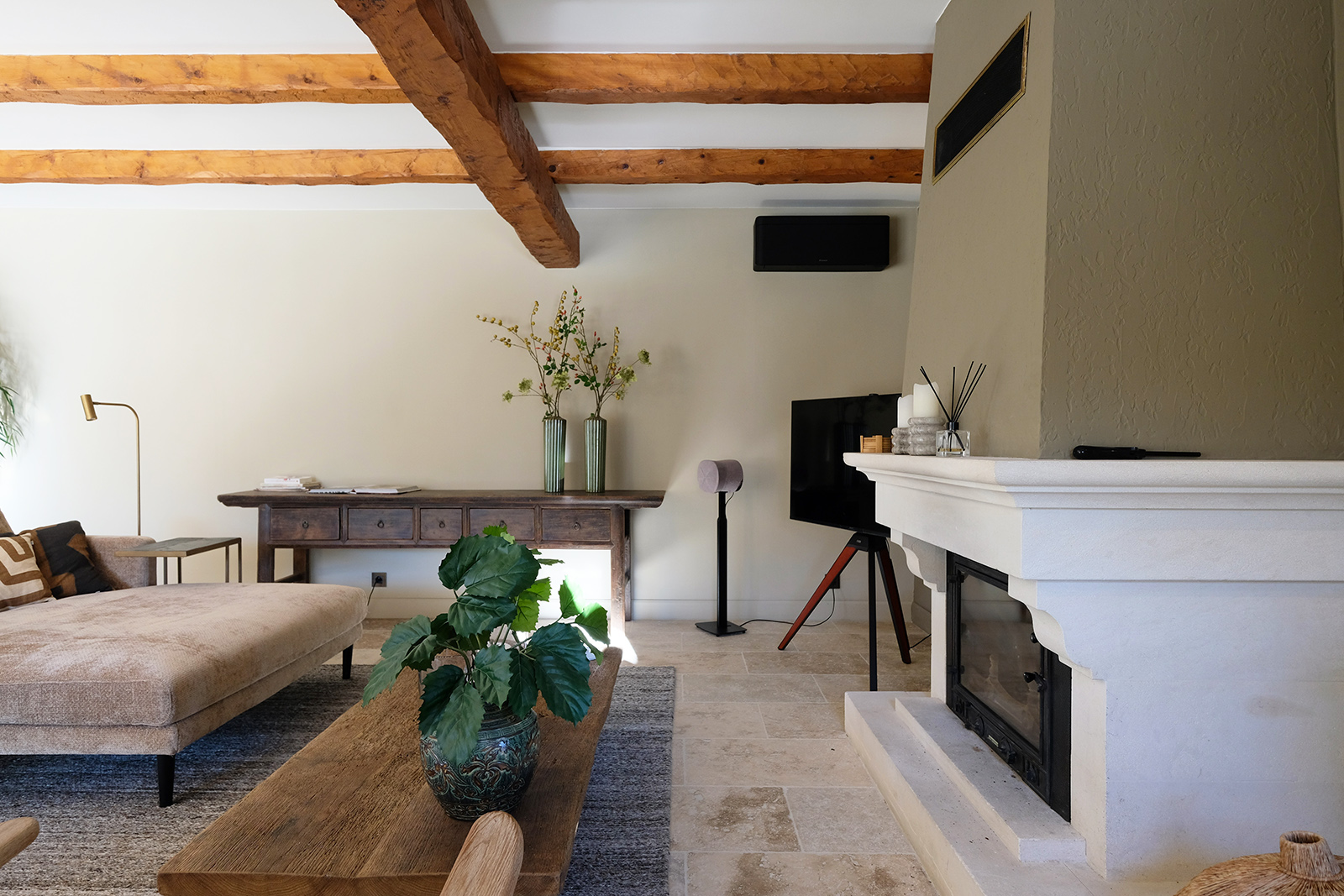 Provenzalische Villa mit einer Wohnfläche von 185 m² auf einem großzügigen privaten Grundstück von 4.000 m². Das gesamte Haus ist mit Klimaanlage ausgestattet. Im Erdgeschoss befinden sich das stilvolle Wohnzimmer, die moderne Küche, das Esszimmer, das moderne Arbeitszimmer und das luxuriöse Schlafzimmer der Eltern mit en-suite Badezimmer. Das Wohnzimmer ist sehr schön und stilvoll eingerichtet mit luxuriösen Sitzmöbeln. Es gibt einen direkten Zugang zur Terrasse und zum Pool. Die helle und moderne Einrichtung verleiht dem Raum eine zeitgemäße Ausstrahlung. Internet/Wi-Fi ist schnell und stabil über Starlink. Der Fernseher ist groß und bietet Netflix und NLziet. Für die Audioausstattung sind Sonos Lautsprecher vorhanden. Was das Wohnzimmer besonders macht, ist die schöne, zeitgenössische Farbgestaltung.