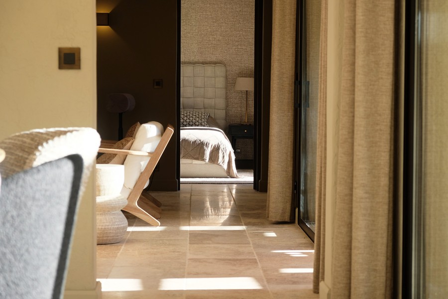 Schlafzimmer 3, im ersten Stock, ebenfalls mit einem Doppelbett (180x200), bietet einen schönen Ausblick. Schlafzimmer 3 teilt sich ein luxuriöses Badezimmer mit Schlafzimmer 2 im Flur, mit Doppelwaschbecken, begehbarer Dusche und WC. Das Schlafzimmer ist mit Klimaanlage ausgestattet.