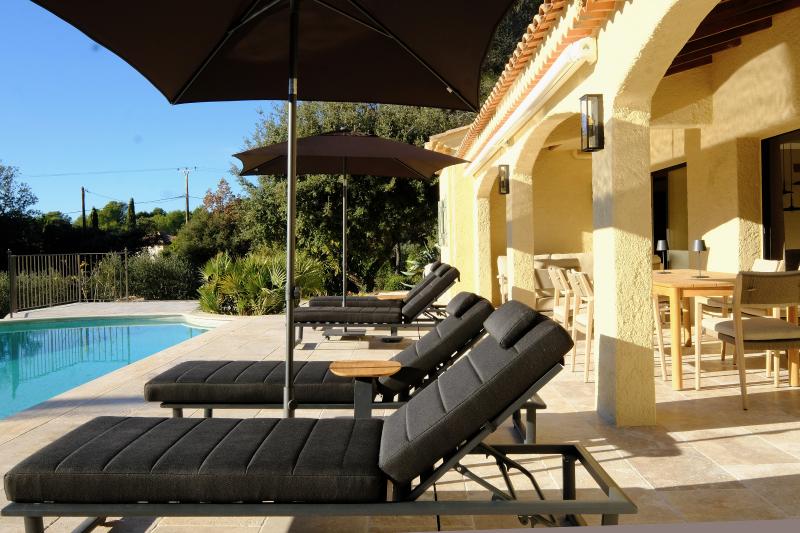 Provenzalische Villa mit einer Wohnfläche von 185 m² auf einem großzügigen privaten Grundstück von 4.000 m². Das gesamte Haus ist mit Klimaanlage ausgestattet. Im Erdgeschoss befinden sich das stilvolle Wohnzimmer, die moderne Küche, das Esszimmer, das moderne Arbeitszimmer und das luxuriöse Schlafzimmer...