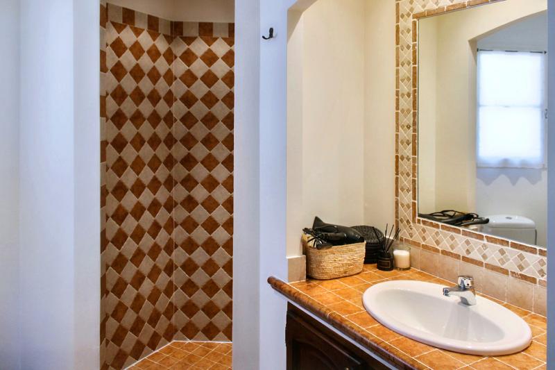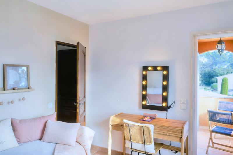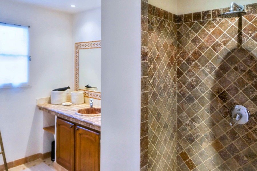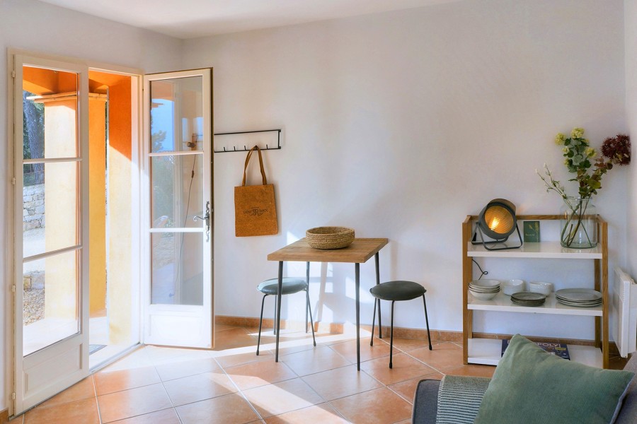 Das Poolhouse ist der Ort, an dem Sie vermutlich den größten Teil Ihres Aufenthalts verbringen werden. Vom entspannten Frühstück in der Morgensonne über ein langes Mittagessen im Schatten bis hin zu einem stimmungsvollen Abendessen, während die Sonne hinter den Hügeln versinkt – alles spielt sich hier ab. Eine komfortable Loungegarnitur und mehrere Sitzecken laden zum Verweilen ein, perfekt zum Abschalten und Schmökern mit einem Buch.