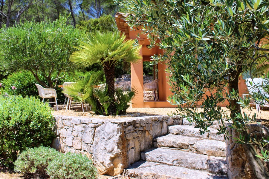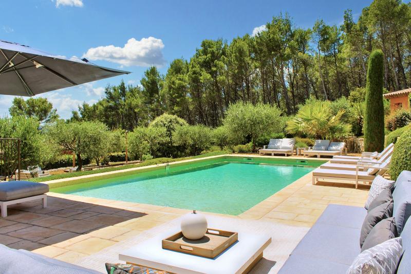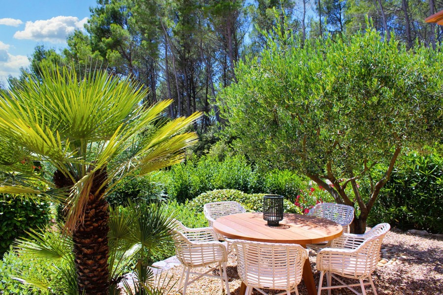 Der beheizbare Pool (5 x 10 m) liegt wunderschön eingebettet in den sehr geschmackvoll angelegten Garten – der große Stolz der Eigentümer. Rund um den Pool stehen komfortable Liegen und Sonnenschirme, und eine Außendusche sorgt für eine erfrischende Abkühlung zwischendurch. Am Kopfende des Pools befindet sich ein stilvolles Poolhouse mit Esstisch, Stühlen und einem WC: der ideale Ausgangspunkt für einen langen, entspannten Tag am Wasser.