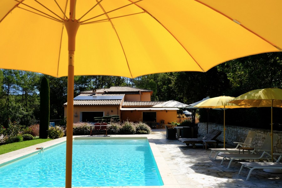 Die Villa verfügt über vier komfortable Schlafzimmer, jedes mit eigenem Bad. Drei Schlafzimmer befinden sich im Obergeschoss, eines im Erdgeschoss.