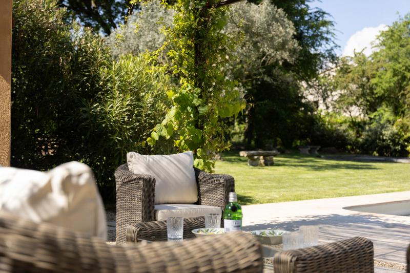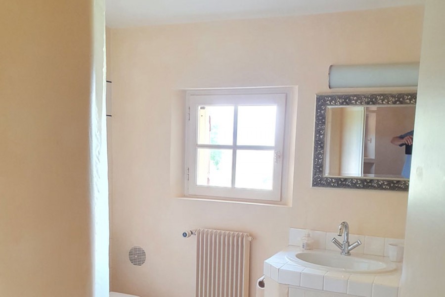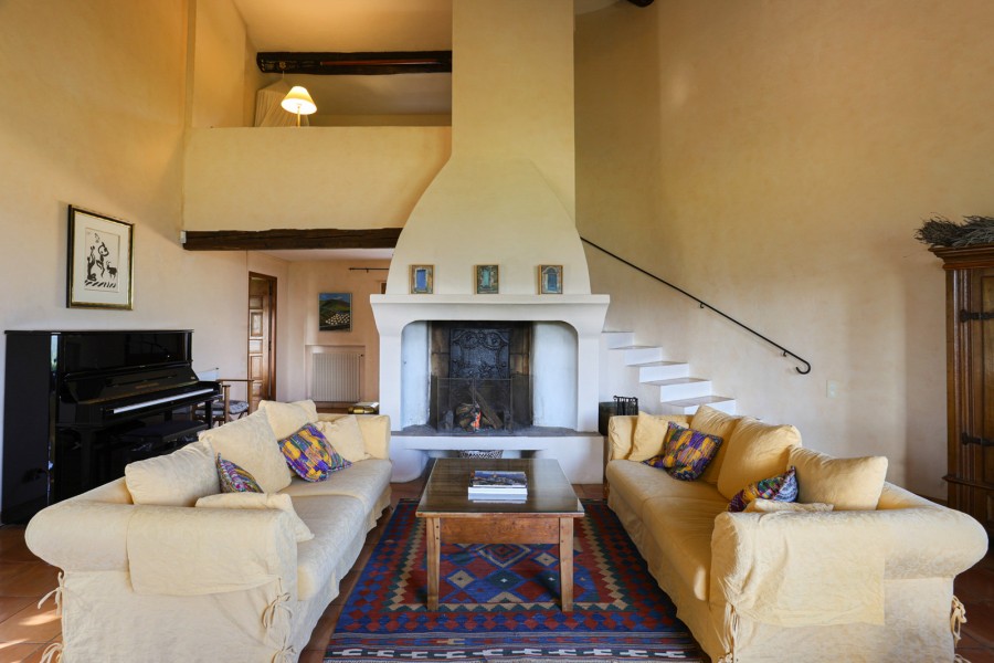 Das Haus mit traditionellem ländlichem Charme ist ~200m² geräumig und attraktiv im Retrostil dekoriert. Die Wände sind im mediterranen Stil in verschiedenen Schattierungen des lokalen Ockers gestrichen. Das Wohnzimmer mit 6m hohen Balkendecken ist um einen riesigen offenen Kamin herum angeordnet, vor dem zwei Sofas und antike Möbel zum Entspannen einladen.