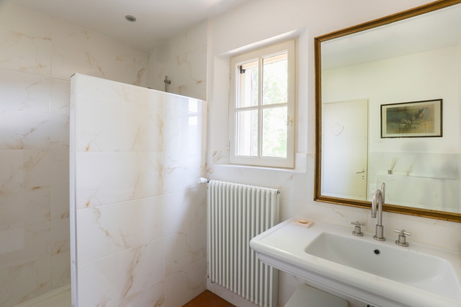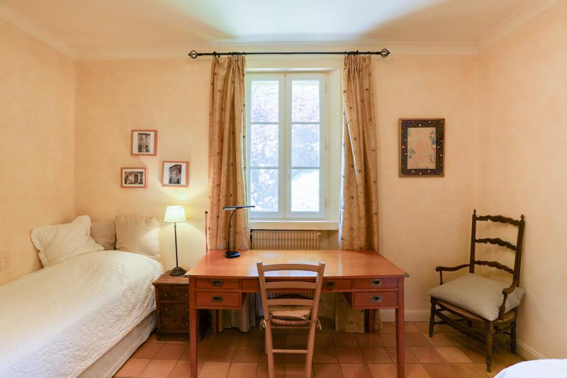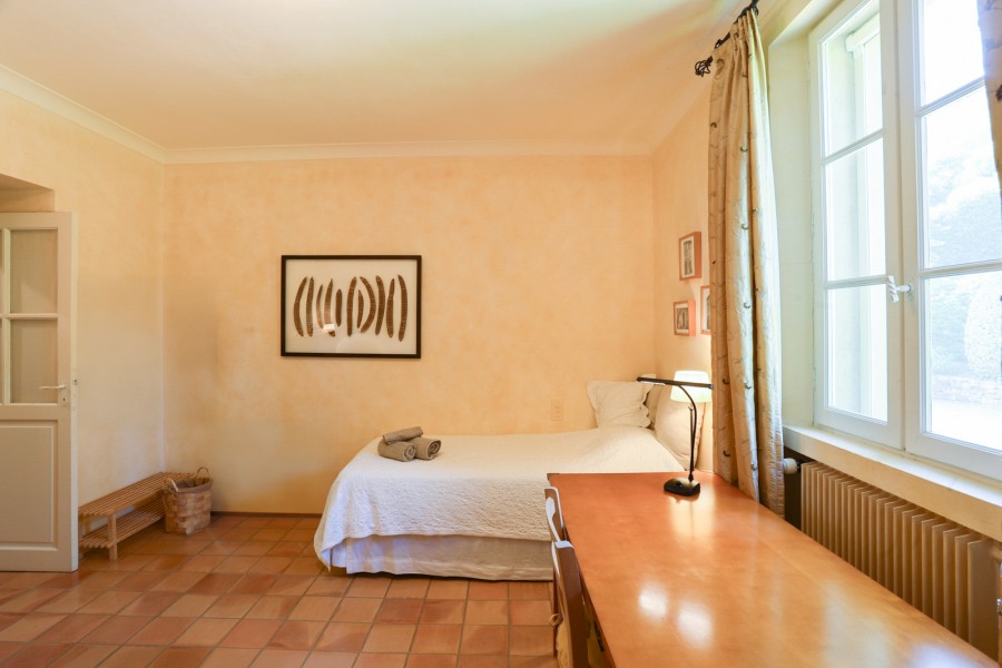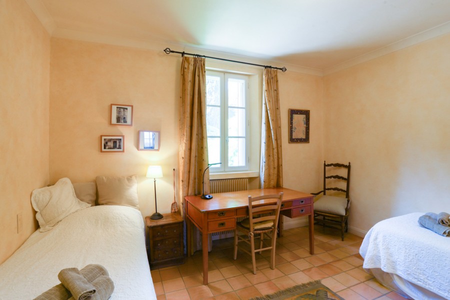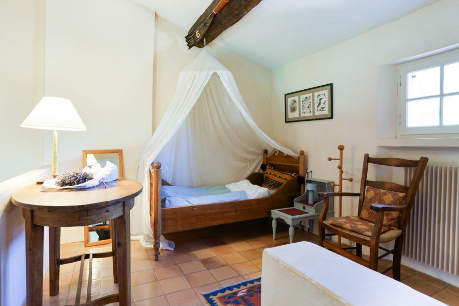 Schlafzimmer 1, im Erdgeschoss gelegen, ist das Hauptschlafzimmer. Es verfügt über ein Doppelbett (2 x 90 x 200). In einem schönen antiken Schrank befindet sich der Fernseher – der einzige in der Villa.
