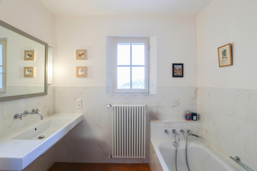Gegenüber der Schlafzimmer, im Flur, befindet sich Badezimmer 1 mit Dusche sowie eine separate Toilette. Zusätzlich gibt es ein zweites Badezimmer mit Badewanne und einer weiteren Toilette, was für optimale Privatsphäre und Komfort sorgt.