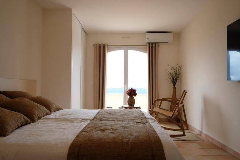Insgesamt gibt es vier Schlafzimmer: eines im Erdgeschoss, zwei im ersten Stock und eines in einem separaten Apartment (auch im Erdgeschoss). Alle Schlafzimmer sind klimatisiert und verfügen über ein modernes en-suite Badezimmer. Jede Unterkunft ist zudem mit einem Fernseher ausgestattet.