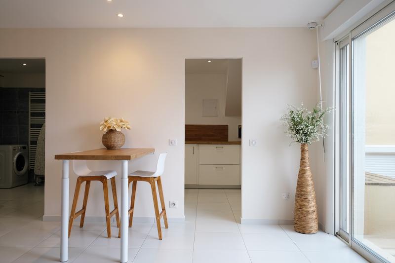 Schlafzimmer 4 befindet sich in einem separaten Studio/Apartment, das ausschließlich über einen eigenen Eingang von außen erreichbar ist. Das Apartment ist großzügig geschnitten und verfügt über ein Kingsize-Bett (180 x 200), eine voll ausgestattete Küche und ein großes Badezimmer mit begehbarer Dusche, Toilette und Waschmaschine. Zudem steht Ihnen eine private Terrasse mit Esstisch zur Verfügung.