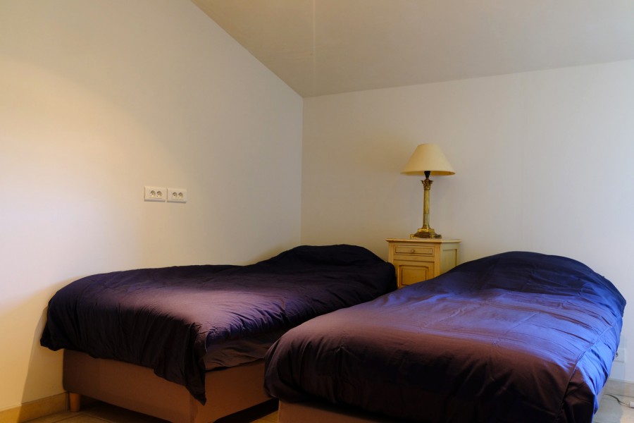 Schlafzimmer 3 befindet sich im obersten Stockwerk. Dieses Schlafzimmer verfügt über zwei Einzelbetten (90x200) und ein eigenes Badezimmer mit begehbarer Dusche, Waschbecken und WC.